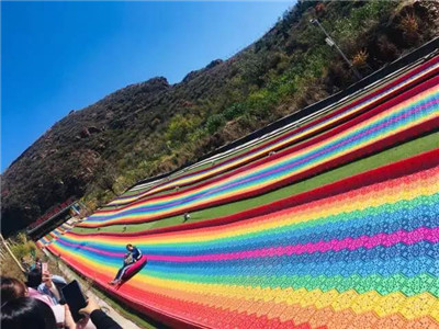 七彩滑道:游客從色彩斑斕的滑道飛流直下,驚險刺激。