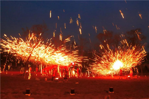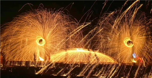 夜游精彩上演千年絕技“打鐵花”!作為流傳于豫晉地區(qū)民間傳統(tǒng)的煙火,歷史悠久可以追溯到春秋戰(zhàn)國(guó)時(shí)期,目前是河南省僅存的大型民間傳統(tǒng)焰火,素有“民間焰火之最”、“中原文化奇葩”、“中華第一鐵花”的美譽(yù),2008年被國(guó)務(wù)院和文化部公布為“國(guó)家級(jí)非物質(zhì)文化遺產(chǎn)”。