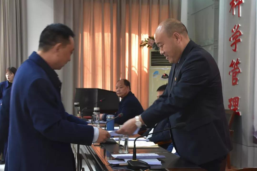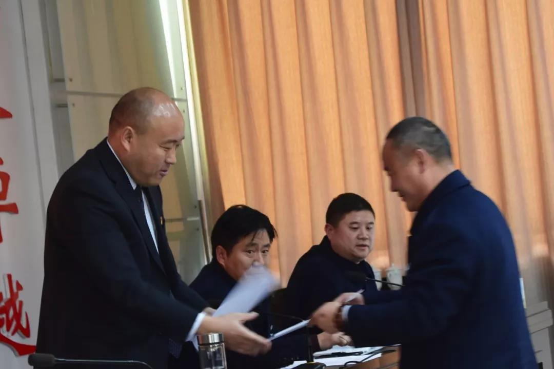 雞冠洞旅游發(fā)展有限公司各部門負(fù)責(zé)人向總經(jīng)理遞交2019年目標(biāo)責(zé)任書。