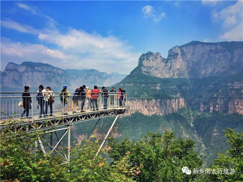被譽(yù)為“世界第八大奇跡”的萬仙山絕壁長廊,長1250米,是郭亮村人與外界連通的唯一一條公路。天界山高空玻璃棧道全長295米,寬1.7米,位于老爺頂之下的半山腰,垂直懸掛在1300多米的紅巖絕壁上,站在上面極目遠(yuǎn)望,峰巒疊嶂,綿延不絕,雄偉壯闊的景象一覽無余。想體驗驚險刺激的你,這兩個景點,千萬別錯過噢!