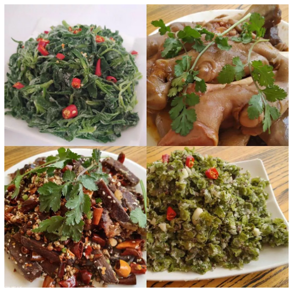 美食小貼士 涼拌野生榆錢、干煸牛肉、麻辣羊蹄、野生面條菜等美食盡在裕花谷大山懷村豐華臺農(nóng)莊。