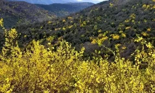 對(duì)的,就是鋪滿溝壑山谷的連翹花,滿枝金黃、香氣淡雅,成片成片的花朵閃爍著金黃色的光輝,為這片春日大地又增添了一抹顏色,真是熱鬧!