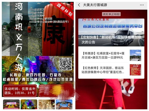 本次活動(dòng)聯(lián)合鞏義市7家A級(jí)景區(qū)面向省外重點(diǎn)客源地推出優(yōu)惠政策,旨在全面推廣鞏義旅游產(chǎn)品及兩日游精品線路,深入拓展省外客源市場(chǎng),是鞏義市實(shí)施聯(lián)合營(yíng)銷(xiāo)的又一積極探索;顒(dòng)前夕,鞏義市通過(guò)客源地旅游社進(jìn)行了大面積的預(yù)熱宣傳。
