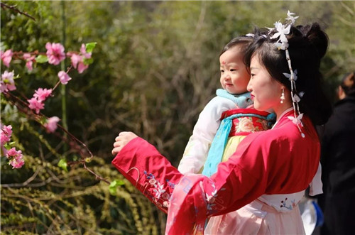 春天是個(gè)美麗的季節(jié),但最美的不是花的姹紫嫣紅,而是融入景中的那一副韻味。身著艷麗漢服的女性在八里溝桃花及秀美山水的襯托下,更顯婀娜多姿,嫵媚動(dòng)人,上演一場(chǎng)百花與漢服相映的視覺(jué)盛宴。