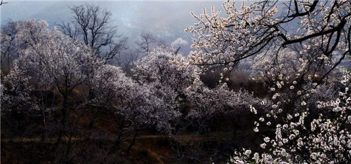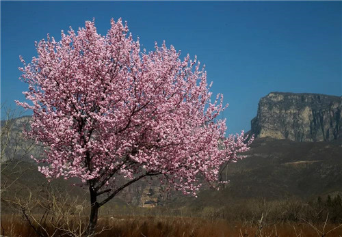 桃之夭夭,灼灼其華,粉白的桃花,映襯著歷史的積淀,威嚴(yán)又不失浪漫。