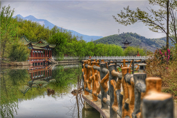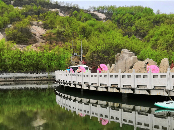 自七峰山生態(tài)旅游區(qū)正門進入,媒體團一行首先被玉女湖上的“旗袍秀”吸引。四位身著旗袍的清秀姑娘,撐著油紙傘,在玉女湖上翩翩起舞。她們身上,有春天的清柔,有夏天的爽朗燦爛,有秋天的馥郁,也有冬天的詩意。