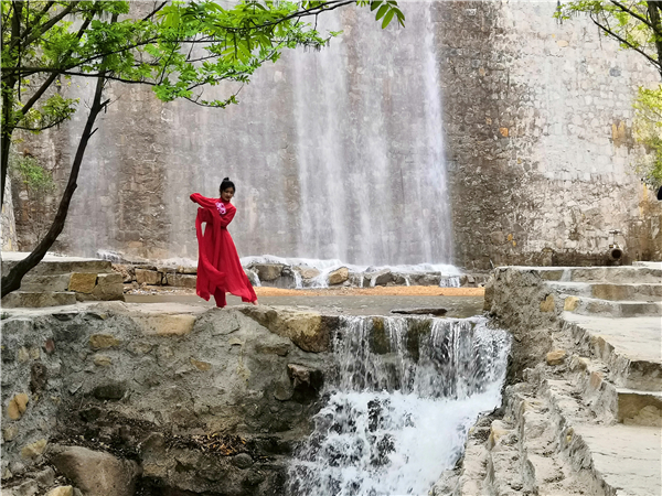 沿著玉女湖一路而上,又見兩位身著古漢服、靈氣逼人的古典美女在溪水旁低吟浣紗,醉夢紅塵的俠女飲酒為快,媒體團一路探尋到達七峰山有著神話色彩的景點“楚女浣紗”。在深山之中,聽著潺潺流水,再加上眼前這一幕,媒體團仿佛被拉回到了幾千年前,成為了美好神話的一部分。在有著“天下第一古長城”之稱的楚長城遺址,媒體團們更是大玩了一次穿越,和城樓上的“士兵”合影,夢回楚國如畫山河。