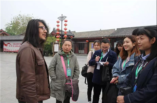 指導(dǎo)老師在為學(xué)生講解清明上河園的特色元素,歷史文化以及本次活動(dòng)的注意事項(xiàng)。