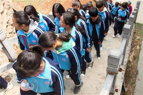 隨后,學(xué)生們在轎頂山紅色抗戰(zhàn)實物展覽前莊嚴(yán)宣誓,一聲聲充滿激情活力的誓詞飄蕩在轎頂山。