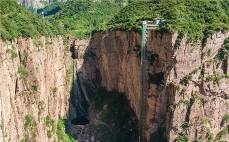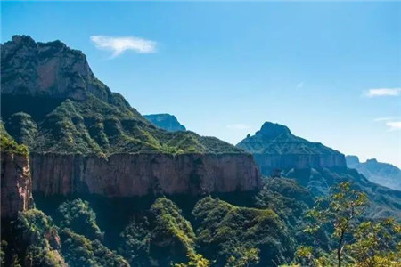 首先,小編一行人先到九蓮山集合,一起乘坐絕壁觀光電梯到達(dá)山頂。到達(dá)山頂后往西蓮寺方向前行,過了石橋左拐沿著崖上步道前往抱犢村,該步道緊鄰紅崖絕壁,是俯瞰南太行最佳位置,沿路綠樹成蔭,風(fēng)景壯美。