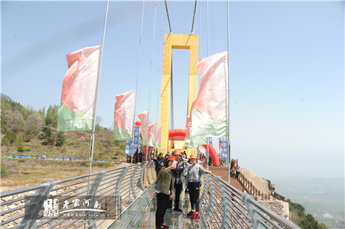 千秋偉業(yè)千秋景,萬里江山萬里美。鴻運(yùn)玻璃橋于2018年11月破土動工以來,全體建設(shè)管理者和工程建設(shè)者克服地質(zhì)復(fù)雜、施工難度大、山地道路局限等方面的困難,經(jīng)過六個月的奮力拼搏,保證了五一的順利開業(yè),建成后的轎頂山玻璃吊橋,設(shè)計(jì)新穎、功能齊全、成為游客游覽觀光、探尋高空刺激的新選擇,也成為轎頂山景區(qū)的一個地理標(biāo)志。