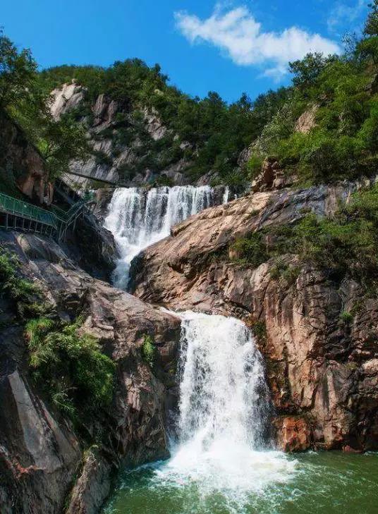五道幢景區(qū)峽谷奇特,斷巖崢蠑,懸崖陡峭,鬼斧神工。谷中河水清澈,緩如垂練,急如拋珠,瀑瀉如注,轟鳴而下,山水相映相輝,如詩如畫。高瀑、幽潭、翠山、密林、淺灘、奇峰形成了這里獨特的自然美景,被譽為“云天上的仙境”。