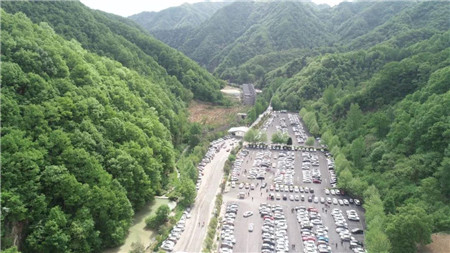 5月2日,五一假期第二天,洛陽白云山旅游度假區(qū)迎來了又一個旅游高峰,停車場停滿車輛,賓館一房難求,旅游市場火爆。