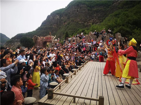 中國猴山五龍口游客爆棚,每天中午前游客車輛就在207國道綿延幾公里排成長龍,景區(qū)入園游客量一度達(dá)到峰值限流分流。西游演繹、老匡說猴、獼猴表演等經(jīng)典節(jié)目吸引游客眼球,到處歡聲一片。