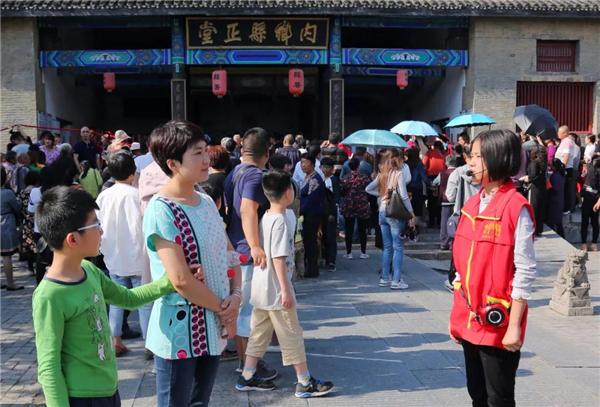 在內(nèi)鄉(xiāng)縣衙的各個展館,文明旅游志愿者一邊向游客發(fā)放文明旅游宣傳單,一邊不厭其煩的為游客做著溫馨提示。切實(shí)做好文明旅游服務(wù)保障工作,走進(jìn)內(nèi)鄉(xiāng)縣衙廣場、歷史文化街區(qū)、游客服務(wù)中心等日常工作所,目之所及,內(nèi)鄉(xiāng)縣衙的志愿者正將“奉獻(xiàn)、友愛、互助”的精神通過自身的實(shí)際行動傳導(dǎo)、帶動身邊的每一個人,也將奉獻(xiàn)服務(wù)送到每一名游客的身邊。