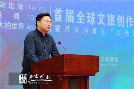 儀式上,字節(jié)跳動今日頭條河南分公司商務(wù)經(jīng)理冷帥發(fā)布博愛共創(chuàng)計劃。現(xiàn)場全體人員用飽滿的熱情向全球say hi,歡迎創(chuàng)作者到博愛創(chuàng)作并高喊:北方三峽 紅葉王國青天河歡迎您!Welcome to qingtianhe。