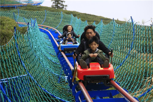 茶山滑道全長(zhǎng)1200多米,整體落差達(dá)158米,勢(shì)如盤龍,依山就勢(shì)甚為壯觀。滑行于觀光滑道上,滑行速度可自行掌握,上行代步,下行娛樂,即驚險(xiǎn)刺激,又安全舒適。既欣賞了風(fēng)景,又節(jié)省了下山的時(shí)間和體力,適合各類旅游群體游玩。