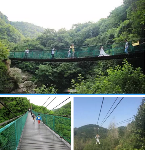 這是一條奇妙的山水畫廊,這里,層巒疊翠,鐘靈毓秀,茂林修竹,鳥語(yǔ)花香,峭壁屹立,奇石密布,飛瀑流泉,溪水潺潺。這里,是留夢(mèng)河谷!徜徉其中,仿佛進(jìn)入人間仙境,令您心曠神怡、流連忘返。 這里不但是一幅美麗的歷史畫卷,還有滑索和吊橋可以體驗(yàn)哦!在游玩山水的同時(shí),更是滿滿的游戲體驗(yàn)感!