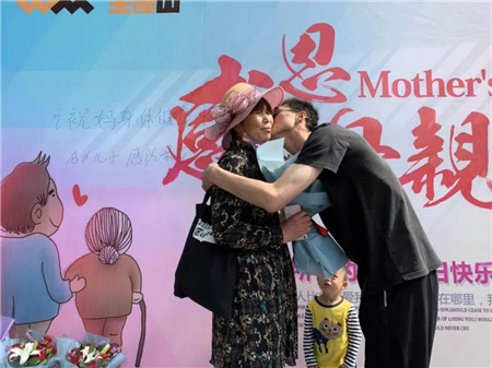 11號上午,百余名來自全國各地的子女齊聚在王屋山景區(qū),活動現(xiàn)場以家庭為單位,子女帶上母親現(xiàn)場深情擁抱并還母親一個吻,這樣的儀式讓不少參與者都留下了感動的淚水。