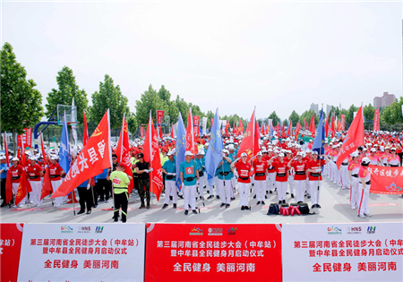 5月11日,第三屆河南省全民徒步大會(中牟站)暨中牟縣全民健身月啟動儀式在中牟縣隆重舉行。來自全省各地45支隊團隊及喜愛健身的近5000名徒步愛好者們歡聚賈魯河畔齊步同行,正式拉開了今年我省全民徒步大會的序幕。