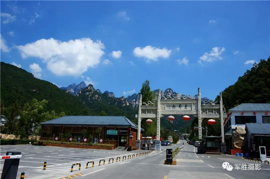 景區(qū)大門。進(jìn)景區(qū)北側(cè)和西側(cè)均為界嶺山莊。