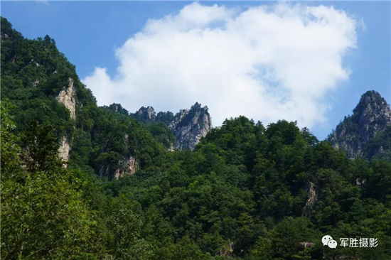 遠(yuǎn)眺的最高峰為犄角尖,這里峰巒迭嶂,猶如一幅幅水墨畫,渲染躍出。
