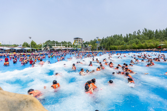 在方特水上樂園,游客不僅可以盡情享受水上項(xiàng)目帶來的清涼刺激,造浪池“海浪”帶來的歡暢體驗(yàn)同樣不能錯(cuò)過!伴著富有節(jié)奏感又勁爆的音樂,游客可以在主持人的帶領(lǐng)下,一起倒數(shù),迎接“瘋狂海嘯”的到來,體驗(yàn)洶涌巨浪帶來的暢爽與刺激!