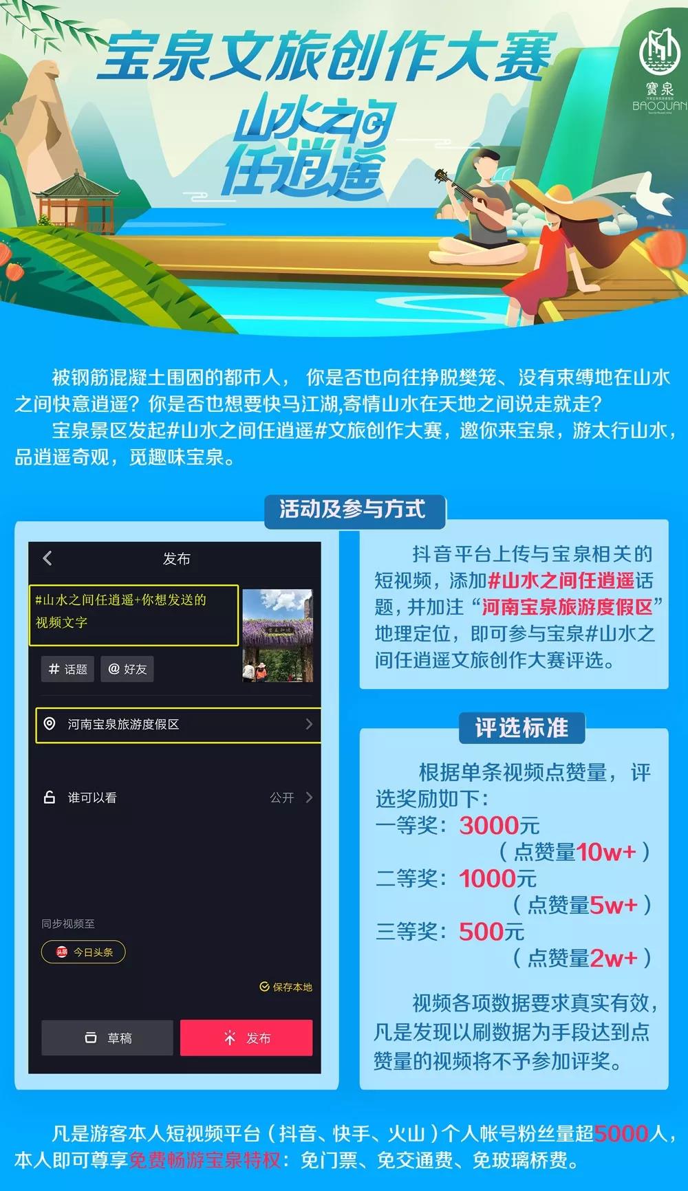 寶泉文旅創(chuàng)作大賽#山水之間任逍遙持續(xù)進(jìn)行中,抖音話題上傳短視頻霸占頭條,拿現(xiàn)金大獎(jiǎng)!