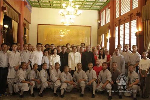 上午十一時,威拉一行抵達少林寺,永信大和尚率少林僧眾前往山門迎接。在少林僧眾的陪同下,威拉一行參觀少林寺建筑,了解少林寺歷史、文化,觀看少林功夫展演,與游客親切互動,并頻頻拿起手機拍照留念。