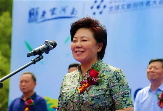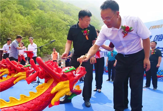 新鄉(xiāng)市人民政府副市長李瑞霞宣布:快樂老家嗨起來——2019“輝縣農(nóng)村商業(yè)銀行杯”寶泉龍舟賽開幕