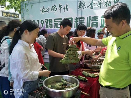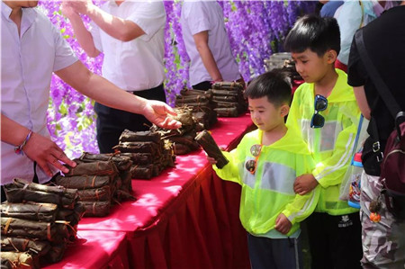 雞冠洞景區(qū)“粽情端午節(jié)”活動場面異;鸨慰筒粌H可以自己動手體驗包粽子、包槲包,還可以將自己包的粽子、槲包煮熟之后帶走,與家人一起分享自己的勞動果實。