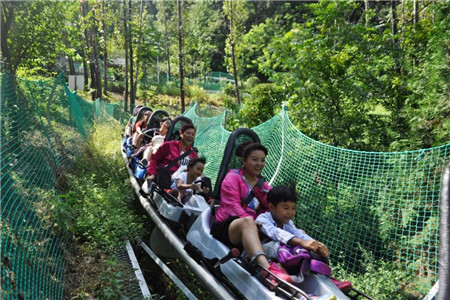 在這里,可以乘坐飛龍滑道,在綠陰中穿梭,花海中飛躍;可以漫步高空玻璃索橋——幸福橋,做個(gè)幸福人;可以坐一坐高空飛碟,體驗(yàn)一下驚中無(wú)險(xiǎn)的滋味;可以玩一次高空漂流——天河漂流,感受夏日涼爽。累了,在山上找個(gè)涼亭小憩,安靜閑適……
