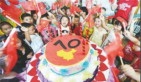 為慶祝祖國(guó)母親70周年生日,活動(dòng)現(xiàn)場(chǎng)準(zhǔn)備了一份超級(jí)大蛋糕,讓我們一起齊唱“我愛你中國(guó)”為祖國(guó)母親送上生日祝福吧!