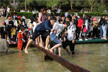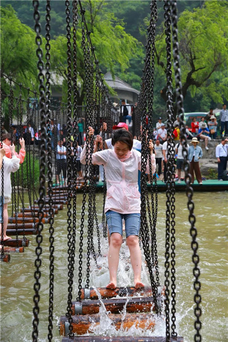 網(wǎng)紅搖擺橋、浮橋、獨木橋、木鏈樁……橋上對戰(zhàn)、花式落水、圍觀吃瓜,掀起嗨玩高潮!