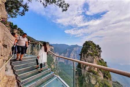 云臺山最火爆的超級網(wǎng)紅打卡地,海拔1080米,全長400余米,是全國首家景區(qū)建成的雙條玻璃棧道。