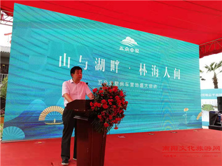 緊接著,南陽(yáng)市文化廣電和旅游局副局長(zhǎng)楊云梯上臺(tái)致詞,對(duì)五朵云墅房車度假營(yíng)地項(xiàng)目探索出創(chuàng)新型旅游度假產(chǎn)品表示肯定,并對(duì)項(xiàng)目啟動(dòng)表示熱烈祝賀。