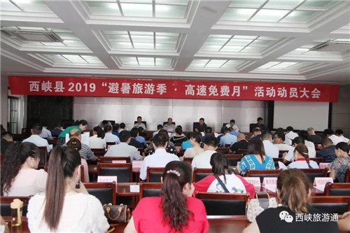 西峽縣委書記、縣長周華鋒講話,他說2019西峽高速免費(fèi)月活動(dòng)是對西峽又一次嚴(yán)峻的考驗(yàn),要求各景區(qū)努力提升景區(qū)接待能力,全力保障高速免費(fèi)活動(dòng)月的順利進(jìn)行;各景區(qū)要不斷完善創(chuàng)新旅游服務(wù),提升服務(wù)水平,提升游客對景區(qū)的認(rèn)知度贊譽(yù)度;各景區(qū)要落實(shí)會(huì)議內(nèi)容,確保旅游安全,保證高速活動(dòng)月期間景區(qū)安全、高效、有序的運(yùn)行;在思想上高度重視,行動(dòng)上高度一致,落實(shí)有力,通過高質(zhì)量的服務(wù),贏得游客的贊譽(yù)度。并強(qiáng)調(diào)各涉旅企業(yè)要深刻領(lǐng)會(huì)旅游高速免費(fèi)月活動(dòng)的重大意義,準(zhǔn)確把握旅游高速免費(fèi)的重點(diǎn)和關(guān)鍵,突出重點(diǎn),用心工作確保活動(dòng)取得一定的效果;切實(shí)加強(qiáng)領(lǐng)導(dǎo)確;顒(dòng)順利推進(jìn)為今后工作打好基礎(chǔ),認(rèn)真總結(jié)去年的經(jīng)驗(yàn);全方位、多角度的周到服務(wù)讓游客高興而來,滿意而歸。