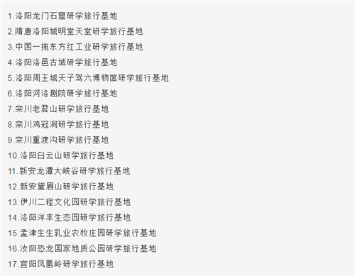 附:首批17家“洛陽市研學旅行基地”名單