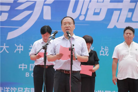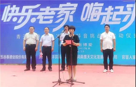 河南省文化和旅游廳宣傳推廣處處長王九位宣布“快樂老家嗨起來青天河快樂大沖關暨抖音挑戰(zhàn)賽”正式啟動