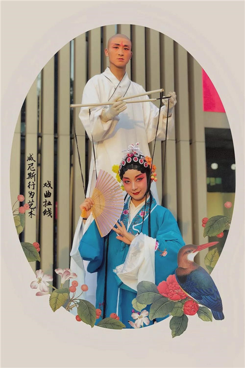 提線木偶是陜西合陽(yáng)縣本土的表演形式。表演時(shí)一人或多人通過(guò)提線的方式控制木偶。此次表演是仿照這種表演形式,在“提線木偶”上再創(chuàng)作。