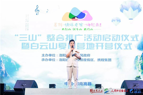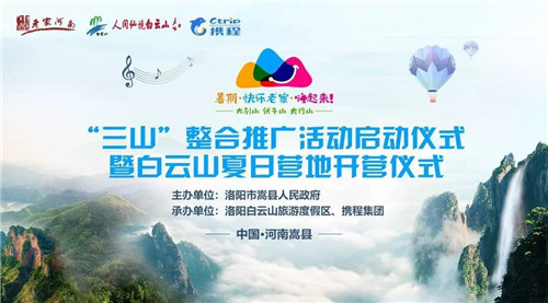 2019年7月29日,“三山”整合推廣活動(dòng)啟動(dòng)儀式暨白云山夏日營(yíng)地開(kāi)營(yíng)儀式在洛陽(yáng)白云山旅游度假區(qū)盛大開(kāi)營(yíng),此次活動(dòng)是由洛陽(yáng)市嵩縣人民政府主辦,洛陽(yáng)市白云山旅游度假區(qū)和攜程集團(tuán)承辦。河南省文化和旅游廳黨組成員、省紀(jì)委監(jiān)委駐省文化和旅游廳紀(jì)檢監(jiān)察組組長(zhǎng)李海現(xiàn),洛陽(yáng)市文化廣電和旅游局黨組成員、調(diào)研員路毅,嵩縣人民政府副縣長(zhǎng)趙靈偉,攜程集團(tuán)政府資源合作副總經(jīng)理、目的地營(yíng)銷總經(jīng)理張旭,洛陽(yáng)白云山文化旅游發(fā)展有限責(zé)任公司副總經(jīng)理寇曉華等出席了當(dāng)晚的開(kāi)營(yíng)儀式。