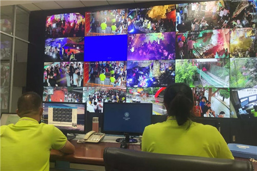 來來往往的游客絡(luò)繹不絕,或在樹蔭下休息納涼,或在排隊(duì)買票、進(jìn)入溶洞游覽。游客中心和票務(wù)大廳內(nèi)忙而不亂,工作人員始終保持微笑、用心服務(wù);監(jiān)控中心,全新的智慧旅游監(jiān)控設(shè)施已投入使用。