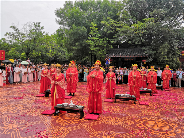 大宋盛世婚典,通過網絡面向全國征集了7對新人,以原滋原味的大宋婚俗文化為載體,給大家呈現了一場穿越版的集體婚禮。一大早,7對新人身著宋式華服登上精心布置的喜船,鑼鼓喧天、嗩吶齊鳴,意氣風發(fā)地在汴河中巡游,七艘雕欄花窗的喜船一字排開,聲勢浩大,兩岸觀禮賓客如潮。隨后七對新人攜手登岸,新娘坐上八抬大轎、新郎騎著高頭大馬 ,威風八面,令觀禮賓客艷羨不已。典禮環(huán)節(jié)更是精彩,皇帝賜婚、鼓樂禮天、誥上禮天、奠雁禮、設道禮、卻扇禮、沃盥、拜天地、同牢禮、合巹禮、結發(fā)禮……一連串的傳統(tǒng)婚俗一氣呵成,莊重典雅,華美驚艷。