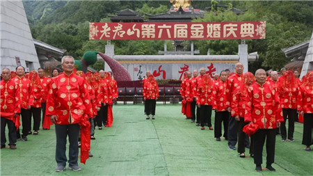 七夕佳節(jié)慶金婚,以“白首相依·愛在仙山”為主題的2019老君山觀海避暑節(jié)之金婚慶典在老君山平洋廣場隆重舉行。金婚老人著盛裝參加中式慶典,共度中國情人節(jié)。
