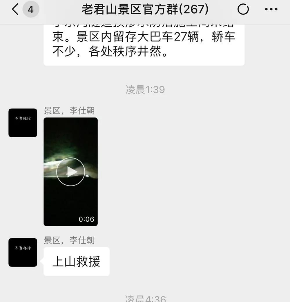 由于深夜索道沒有運營,李仕朝立即通知景區(qū)值班領(lǐng)導(dǎo)高紅,他第一時間組織救援隊,車隊值班人員吳萬利與安保部值班人員,深夜開車趕往中天門接游客下山。
