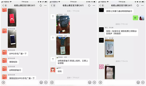 拾金不昧是中華民族傳統(tǒng)美德,這樣的善舉時常在老君山景區(qū)發(fā)生。有時是工作人員在巡查時撿到失物,有時是游客、商家撿到失物主動交給景區(qū)工作人員,景區(qū)工作人員都會第一時間通過廣播尋找失主。