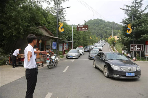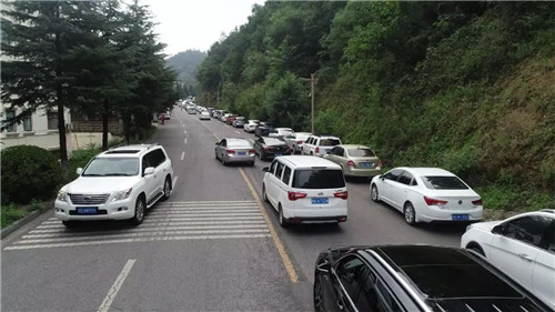 隨著車流量的不斷上升,景區(qū)的秩序依然良好。車輛在工作人員的指揮下有序行進。
