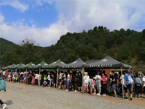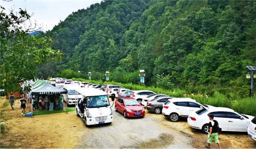 8月17日—18日是欒川高速免費活動第三個周末,早上七點開始,綠樹成蔭、清涼舒爽的天河大峽谷就迎來游客陸續(xù)入園。天河大峽谷景區(qū)全天平均氣溫維持23℃左右,來自鄭州、洛陽、平頂山、許昌等地的自駕游客已成為周末入園參觀的主力軍。上午10時,景區(qū)停車場進入飽和狀態(tài),景區(qū)立即啟動臨時停車場。