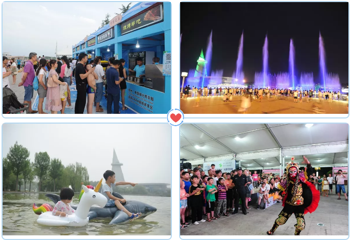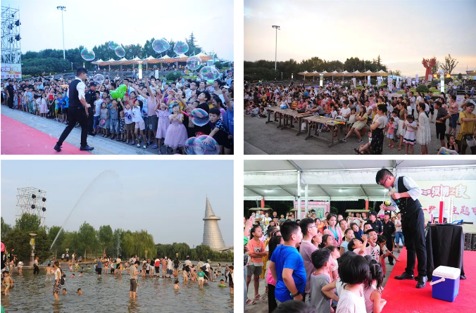 綠博之夜期間,禮贊新時代、一帶一路、美食風(fēng)物、新興藝術(shù)、青年文化,五大主題帶游客玩轉(zhuǎn)一夏!科學(xué)實驗室、沙畫表演、勁歌熱舞、變臉?biāo)囆g(shù)、大型魔術(shù)、DJ秀、酷炫十足的激光表演、特色美食、絢爛的音樂噴泉、嬉水狂歡、一帶一路主題電影等多個精彩十足的表演讓游客盡情地感受夏夜的魅力。