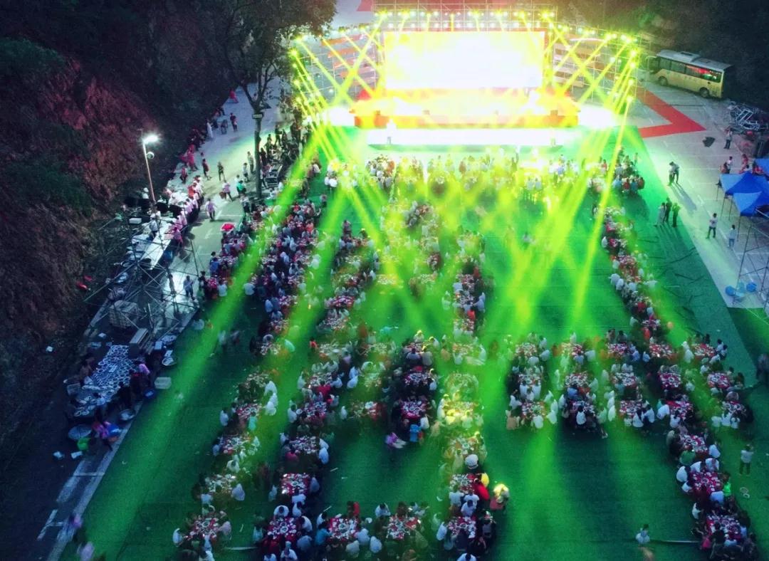 在慶祝祖國七十歲華誕之際,老君山文旅集團(tuán)也迎來了成立12周年的紀(jì)念日;顒蝇F(xiàn)場,老君山景區(qū)擺出260桌宴席答謝鄉(xiāng)親及建設(shè)者,2000余人歡聚一堂,共慶發(fā)展旅游業(yè)帶來的脫貧致富成果,感恩黨和政府帶領(lǐng)大家走向幸福生活。